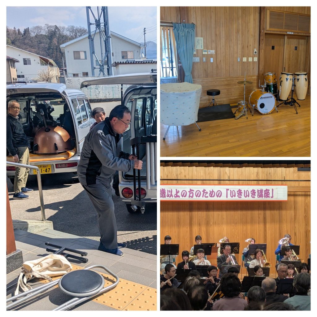 地元公民館に所用で伺ったところ、地域ふれあい事業が開催されており、中学校の吹奏楽部を母体として設立された地域吹奏楽クラブ『奏クラブ』と天童の音楽愛好家の方の『YCBクリスタルサウンズ』の合同のコンサートが行われていて、素敵な音色に観客の割れんばかりの拍手!聞いていた方々も笑顔が絶えない時間でした!